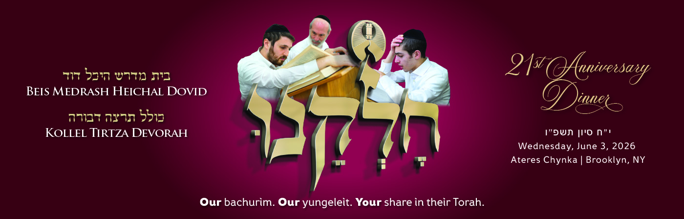 Dear , Thank you for your participation in Beis Medrash Heichal Dovid/Kollel Tirtza Devorah’s 20th Anniversary Dinner. On behalf of the administration and faculty of the Beis Medrash and Kollel, we would like to acknowledge your donation and thank you for your generosity. With much Hakoras Hatov for your dedication and support.